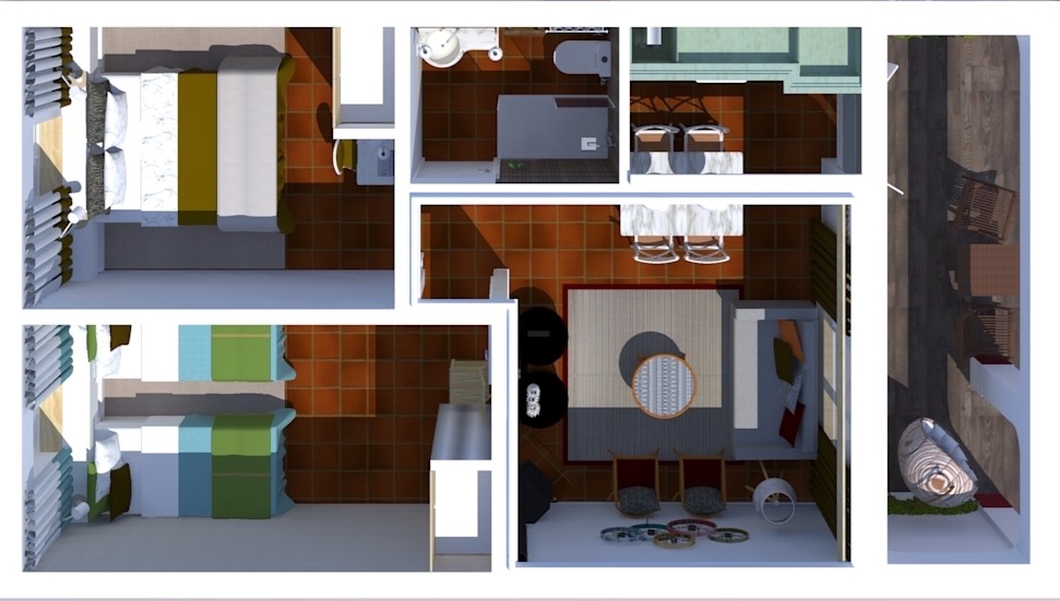 Compreendemos que a proposta tinha de assumir grande parte do existente enaltecendo-o, já que o proprietário tinha a ideia de fazer um investimento controlado, apoiado na sua experiência como construtor, de administração e reconstrução directa. Assim, tendo por referencia a enorme quantidade de produtos naturais locais de valor, propusemos o Serviço EasyDecor para a criação dos novos layouts de renovação das 10 Casas que posteriormente foram executados pelo proprietário. Apresentamos aqui um dos exemplos das 10 paletes propostas para o perfil LifeLike e uma das Casas e o produto final conseguido.